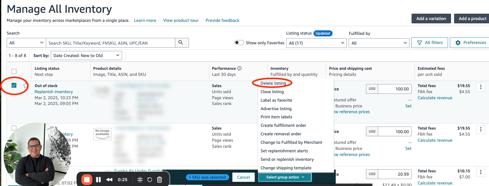 👉 Delete the old parent ASIN from Manage Inventory