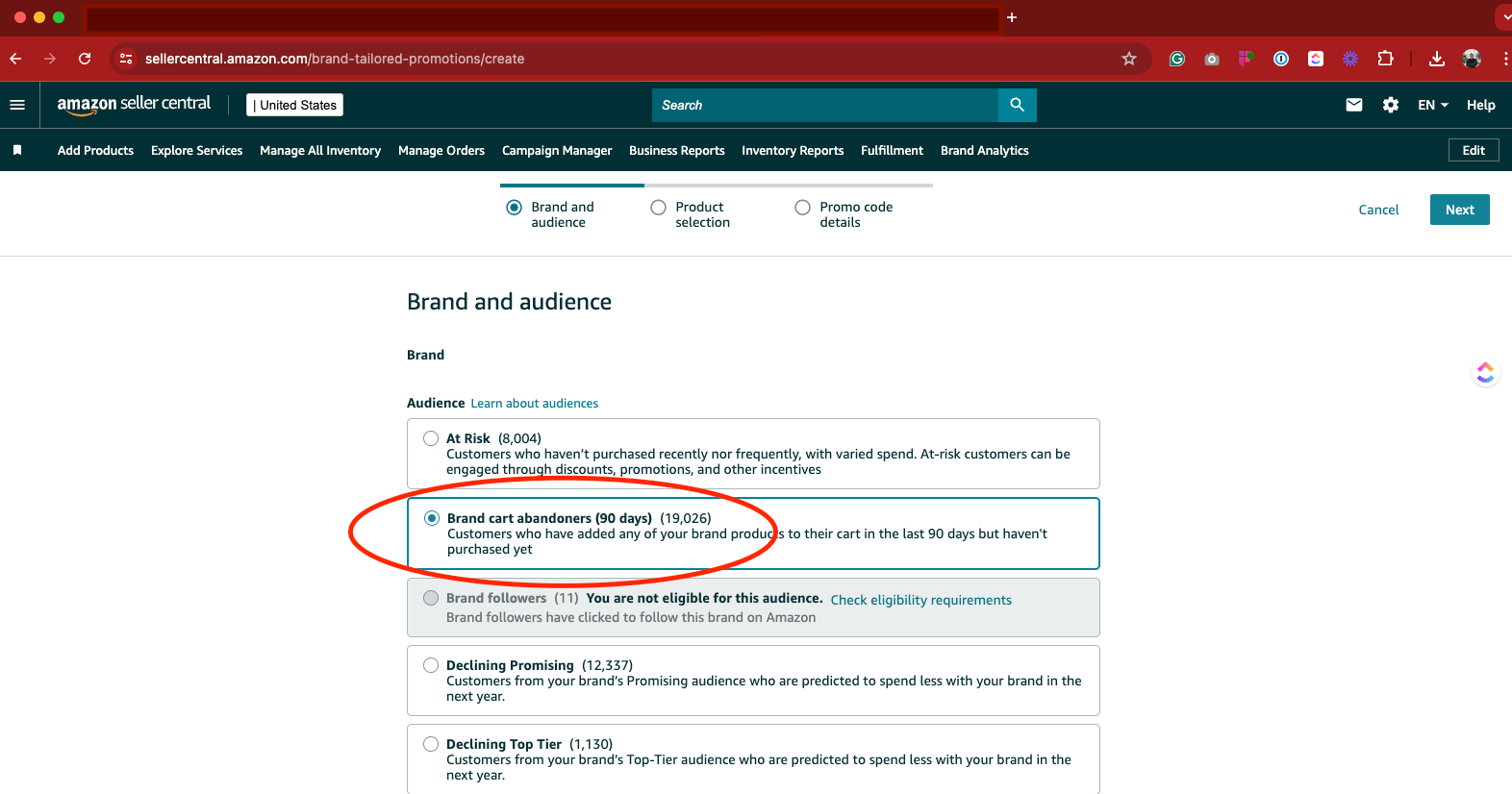 We also recommend running a promotion on the brand cart abandonment for the last 90 days.