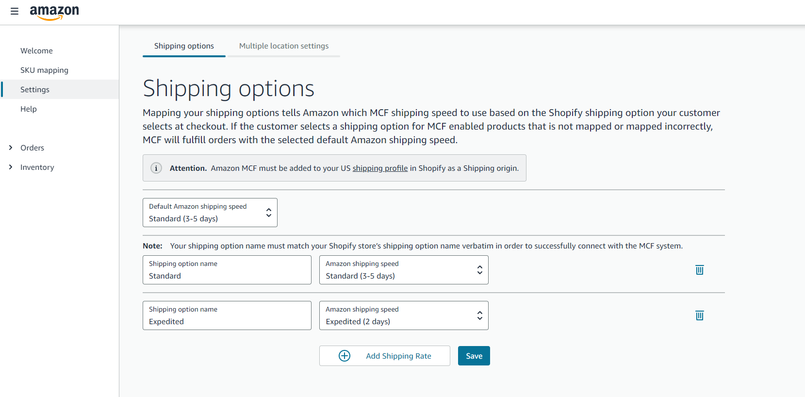 - You will need to create a shipping option based on Amazon MCF shipping.