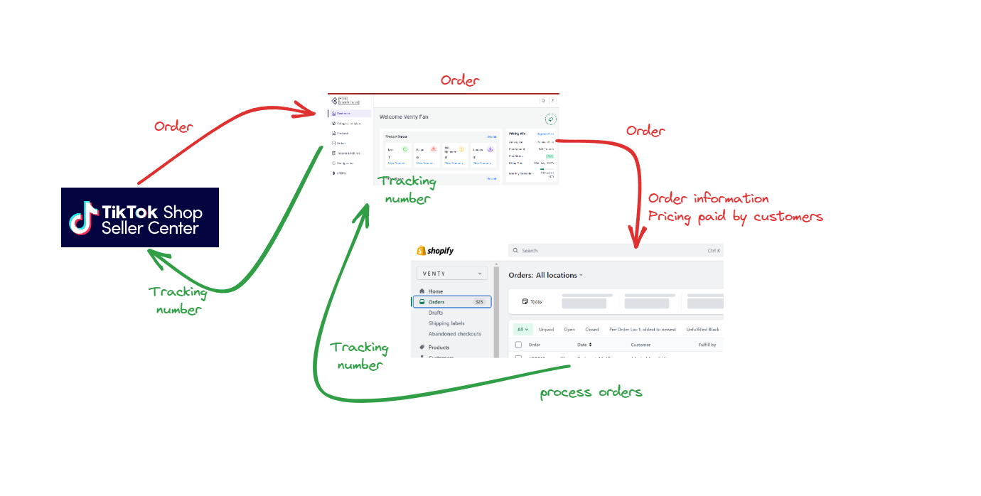 You sell on Shopify and process orders at your warehouse. If you want your FBA inventory to fulfill TikTok orders, use Amazon MCF (Multichannel Fulfillment).