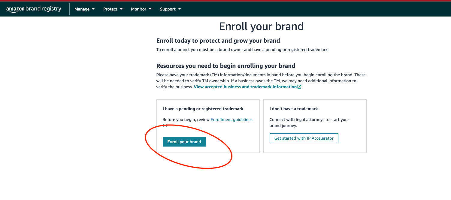 Click on Enroll your brand 🖱️ 👀 The print screen is below.