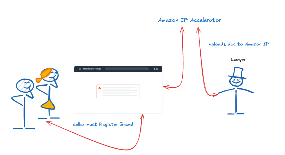 - The Lawyer submits a PDF document to the seller. The seller will need to register the brand on https://brandregistry.amazon.com/ using the lawyer's PDF.