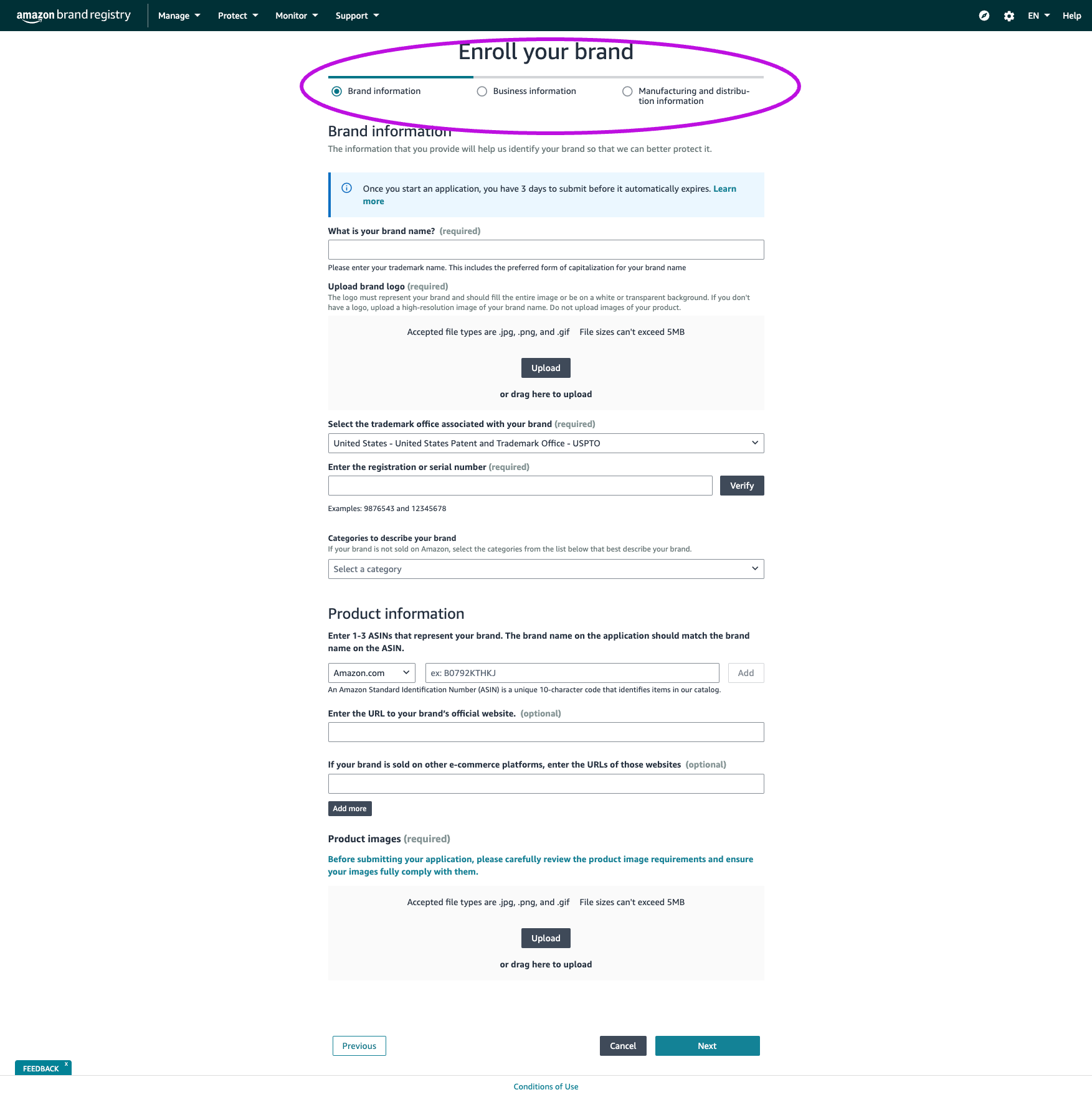 Amazon offers a Brand Accelerator Program that helps you get up and running quickly on their Brand Registry.