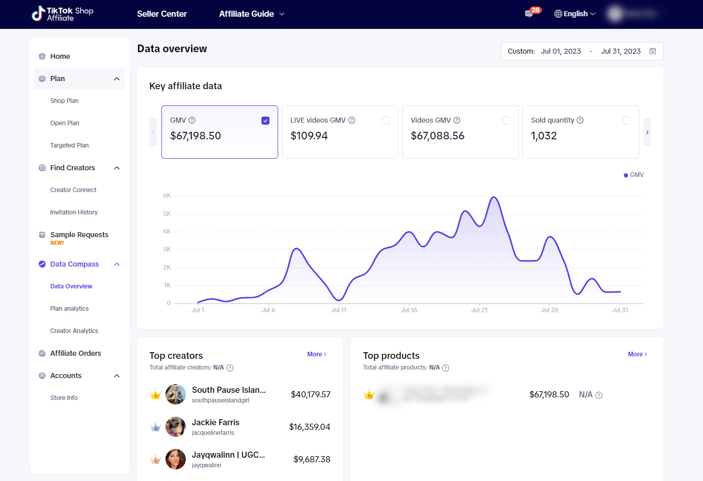 The TikTok shop tracks each sale; see the print screen below. Sales data will be found under Data Compass.